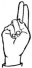 На ћирилици написано МАРТИН ЧИБУКОВАЦ састоји се из 15 слова [?]. Исписано ћириличном једноручном азбуком за глувонеме: